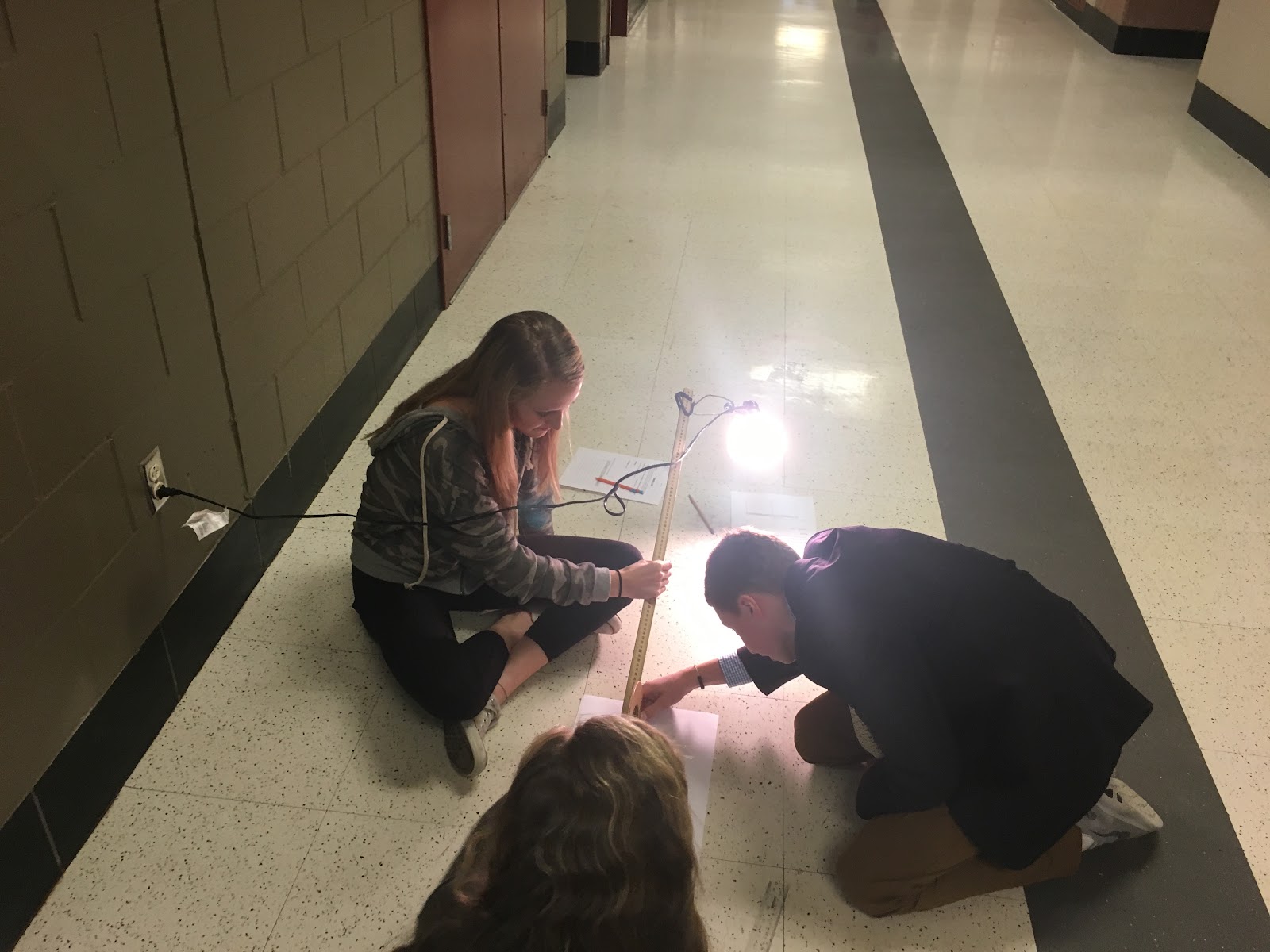 Physics students measured mechanical advantage and efficiency of pulley systems in our study of energy and simple machines.